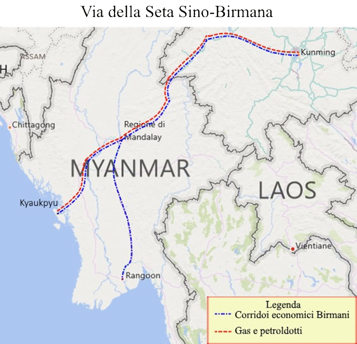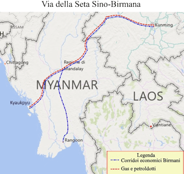 La crisi umanitaria dei Rohingya si va però ad inserire in un più ampio quadro geopolitico che include gli interessi cinesi nella regione e la Nuova Via della Seta. La regione del Rakhine è infatti centrale per gli interessi economici di Pechino per via di due progetti fondamentali: il porto ad alto pescaggio di Kyaukpyu e il nuovo gasdotto Myanmar-Cina. Tali infrastrutture hanno infatti l’obbiettivo di ridurre la dipendenza cinese dallo stretto di Malacca. Per tali ragioni Pechino, mano a mano che la reputazione internazionale del paese crollava, ha intensificato costantemente il proprio sostegno alla giunta militare.