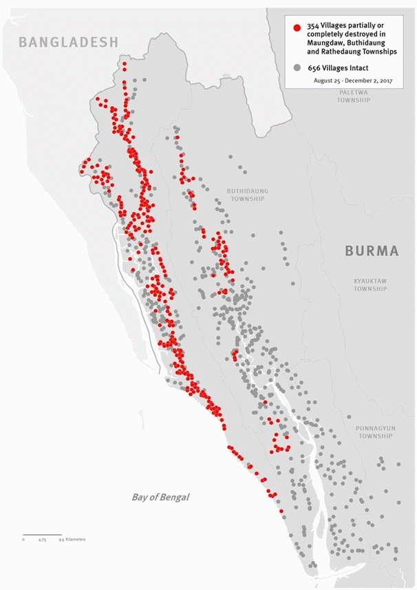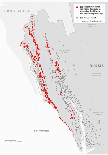 Le persecuzioni hanno raggiunto il loro apice nel 2017 quando hanno costretto oltre 700.000 Rohingya ad abbandonare il paese per fuggire nelle nazioni confinanti, principalmente in Bangladesh. Le violenze di quell’anno hanno portato alla distruzione di oltre 350 villaggi abitati dalla minoranza.