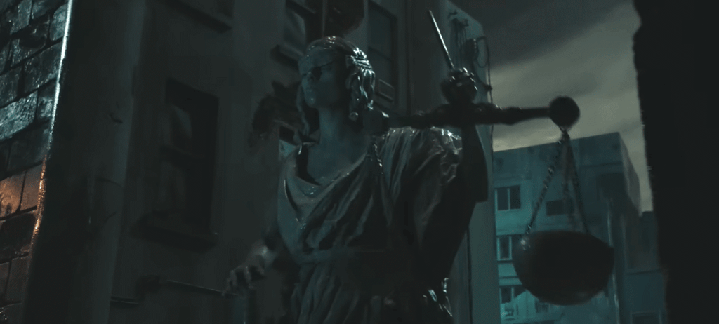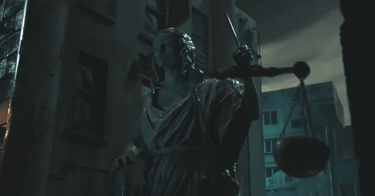 Nell'Immagine, la statua della giustizia si accascia, stanca. Nel film seguono la statua della legge, con la tavola distrutta e quella della saggezza incatenata e senza fiato.