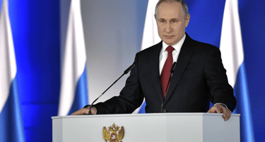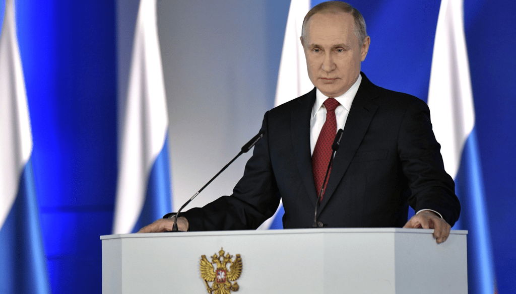 Vladimir Putin durante il Discorso presidenziale all’Assemblea Federale del 2020, momento chiave in cui furono annunciate le riforme costituzionali poi approvate con referendum.
