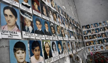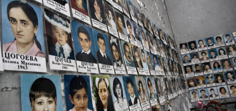 Memoriale delle vittime dell’attentato alla scuola di Beslan (1–3 settembre 2004), in Ossezia del Nord. Un commando terroristico prese in ostaggio centinaia di persone, in gran parte bambini; l’assalto finale causò oltre 330 morti, segnando profondamente la società russa.