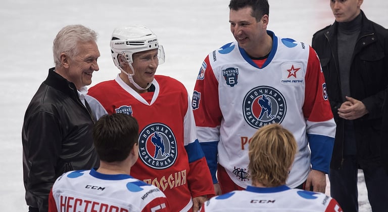 Alla sinistra di Vladimir Putin si trova Boris Rotenberg, imprenditore russo e figura di primo piano nella cerchia economica vicina al Cremlino. La sua presenza richiama il legame tra potere politico e nuova élite imprenditoriale consolidatasi negli anni Duemila.